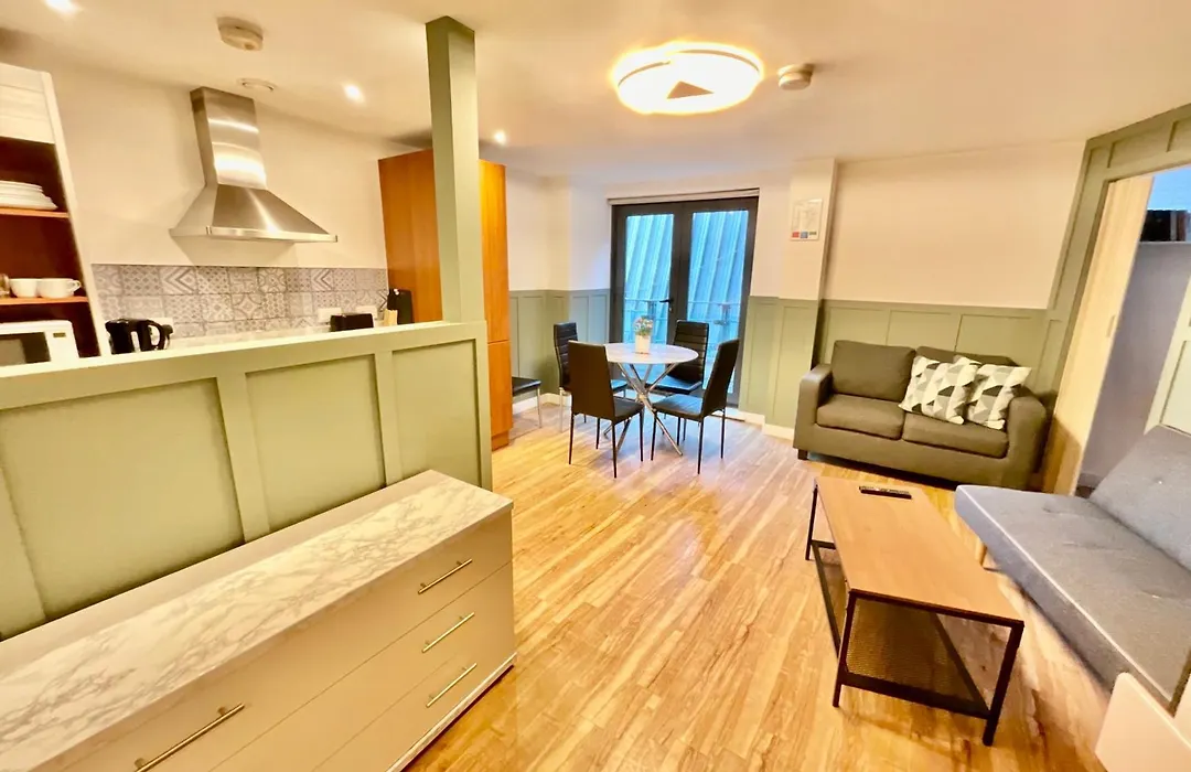 El Two Bedrooms Flat - Manchester City Centre está equipado con una cocina completa y una zona de comedor para que los huéspedes puedan disfrutar de sus comidas. Los huéspedes también pueden tomar un autobús en la estación de autobuses Peter Street/Mount Street, situada a tan solo 5 minutos a pie, para explorar Mánchester.